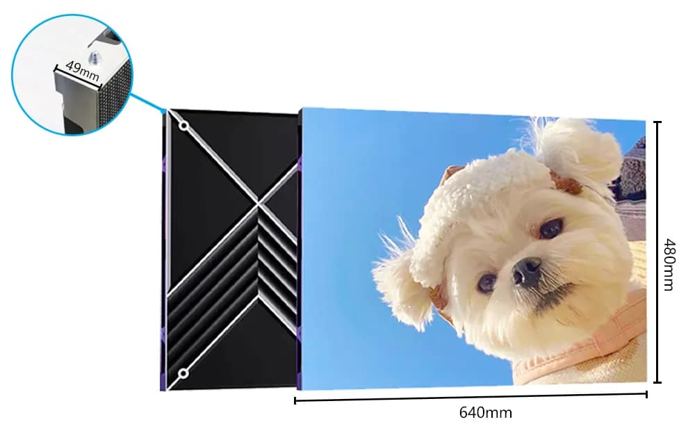 Tamanho do gabinete: 640*480*49mm Proporção Áurea 16:9 Resoluções FHD/4K pixel a pixel
